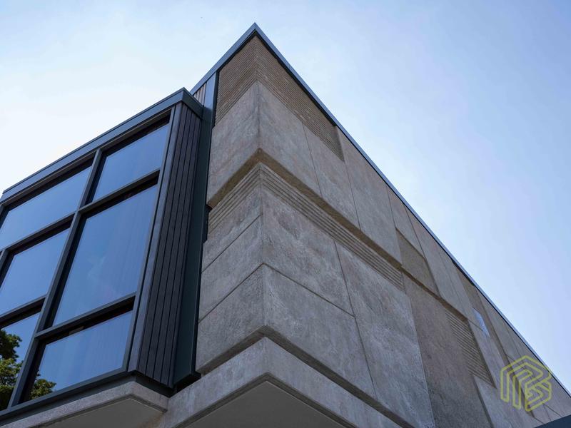 Über die eigentliche Sanierung hinaus implementierten wir zusätzliche Schutzmaßnahmen. Dazu gehörten eine Hydrophobierung auf Silanbasis für einen beständigen Witterungsschutz sowie ein Graffitischutz mit Fluor-Polymer-Imprägnierung. Diese Systeme stellen sicher, dass die Oberfläche nicht nur optisch homogen wirkt, sondern auch langfristig gegen äußere Einflüsse gesichert ist.